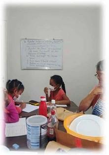 A la reprise en juillet, nous avons dû nous adapter au nouveau calendrier scolaire accueillant ainsi les enfants en matinée. L’ambiance du matin est vraiment différente de celle de l’aprèsmidi : il faut préciser que nous accueillons que les tout-petits, c.à.d. les Grades 1 à 3, les plus grands, eux venant les après-midis. Il nous a aussi fallu respecter les mesures sanitaires : pas plus de 30 personnes dans l’enceinte de La Ruche, port du masques (quoique parfois difficile pour les petits et même pour les grands !), désinfectant... Il n’empêche que les activités à La Ruche – quoique modifiées de par la situation – ont pu se dérouler sans problèmes !